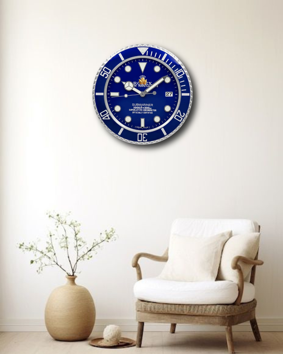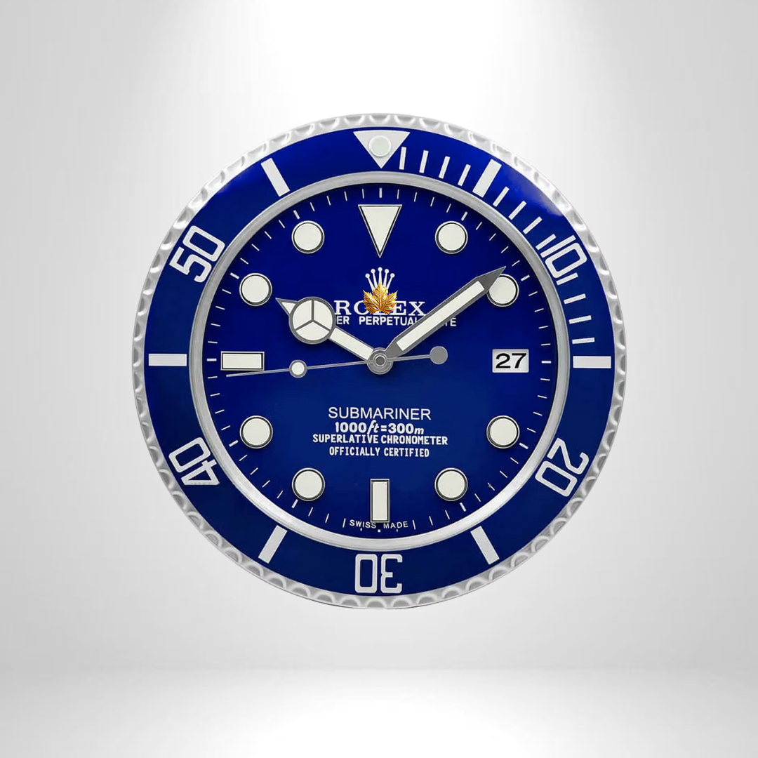 Elevate your space with the iconic elegance of the Rolex Submariner Wall Clock in a stunning blue dial. Inspired by the legendary Submariner watch, this wall clock embodies precision, luxury, and timeless design. Its deep blue dial with sleek silver accents captures the spirit of the open seas, making it a perfect statement piece for modern interiors, offices, or luxury lounges.